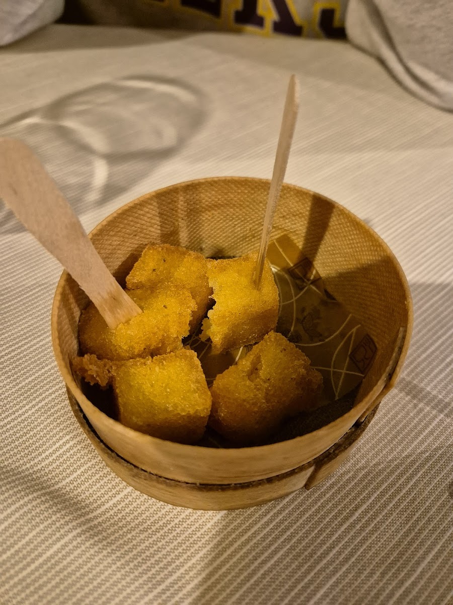 Had a wonderful lunch! Service was great for a walk in group of 6. The complimentary fried polenta was a nice treat. It was so good- crispy on the outside and creamy on the inside. The pizza was delicious and huge portions. Would definitely recommend this place. The waiter spoke little English but that didn’t matter, we made it work. So glad we happened upon this place.
